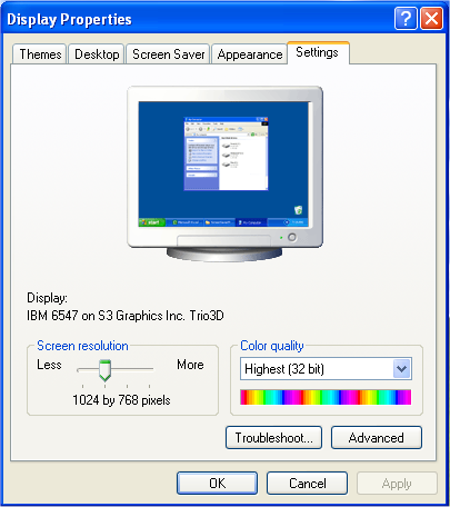 | Set the Screen Resolution in the following to 1024 by 768. | |