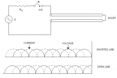(2.) The current reflection from an open circuit is out of phase, from a shorted